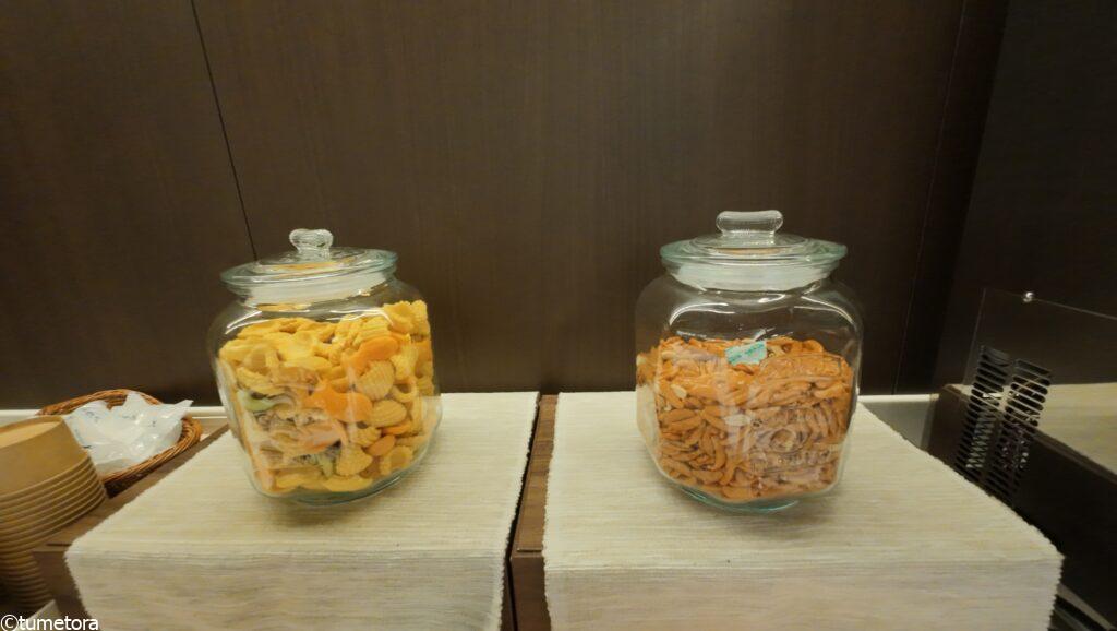 ラウンジ内には無料のスナックも用意されています。