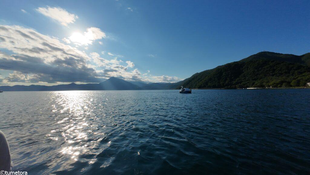支笏湖の湖面に少しだけ出て景色を堪能します。