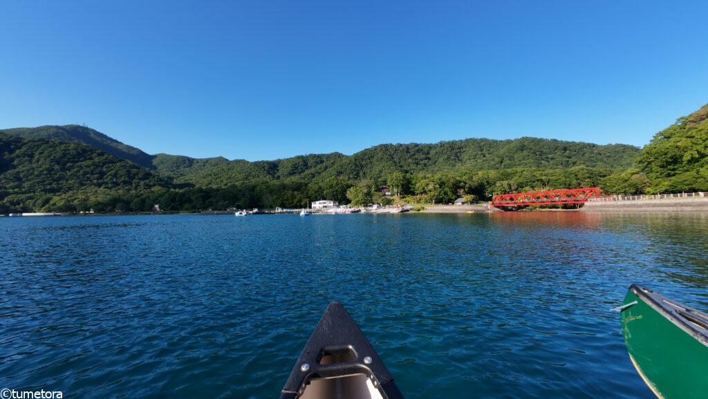 支笏湖の湖面に少しだけ出て景色を堪能します。