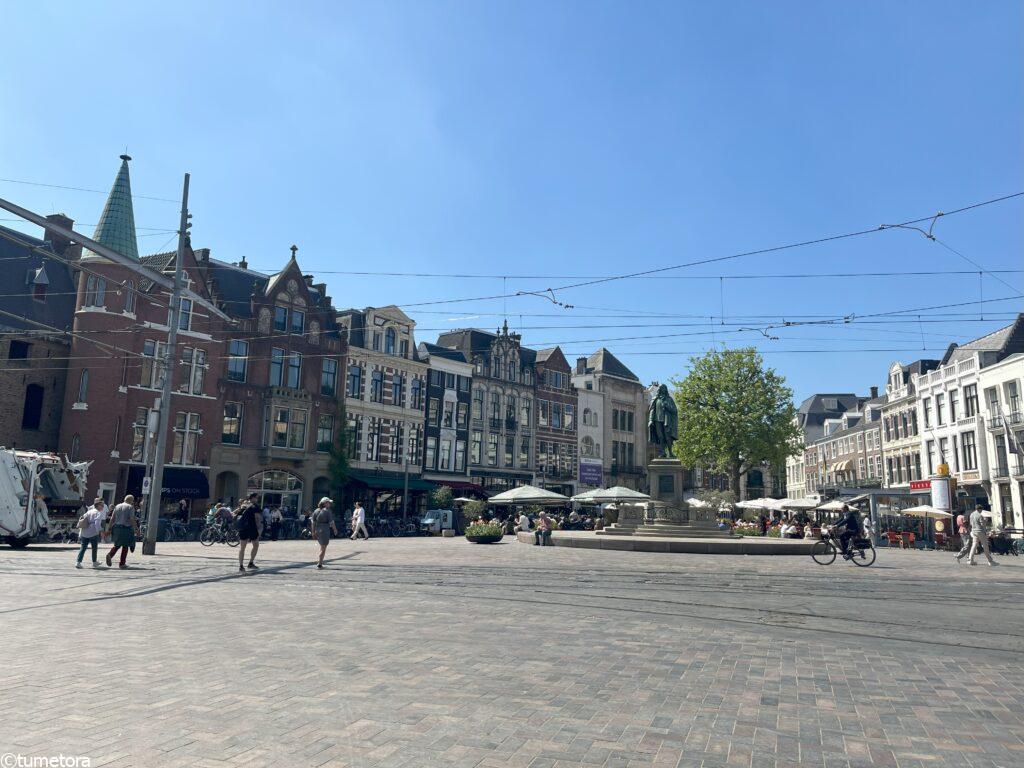 ヨハン・デ・ヴィット像近くのテラス席には常にたくさんの人がいたので