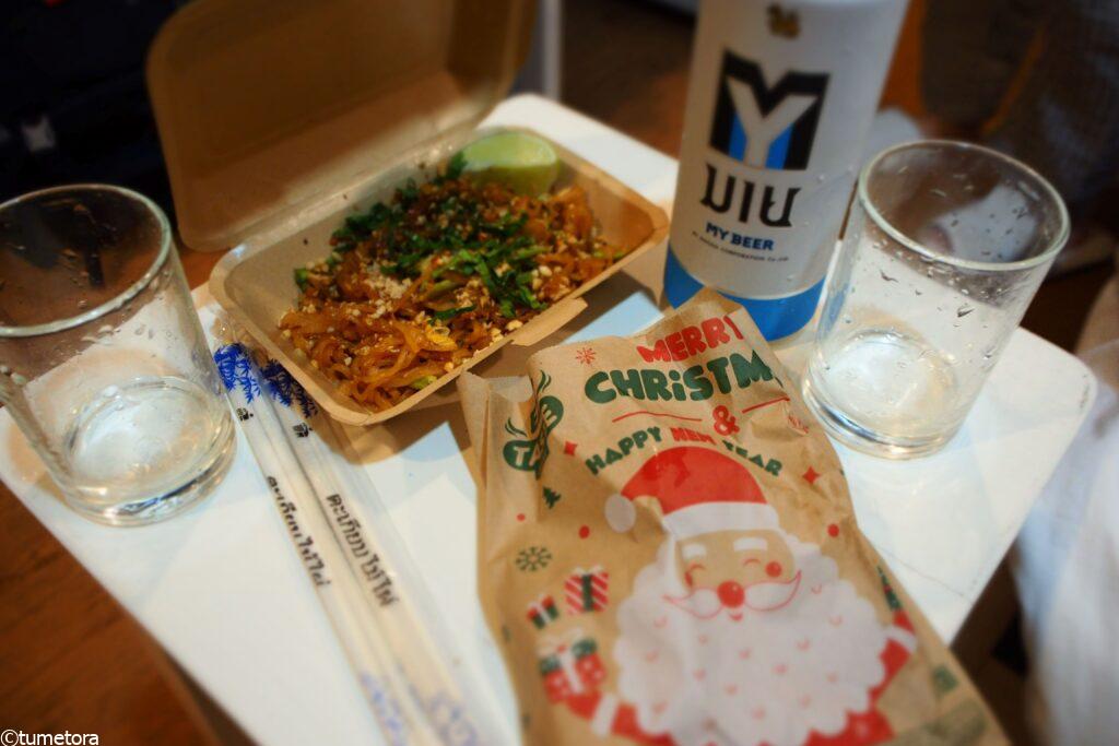 あまりご飯が売っていなかったのでパッタイ 30THB(約120円)を1個購入しました。