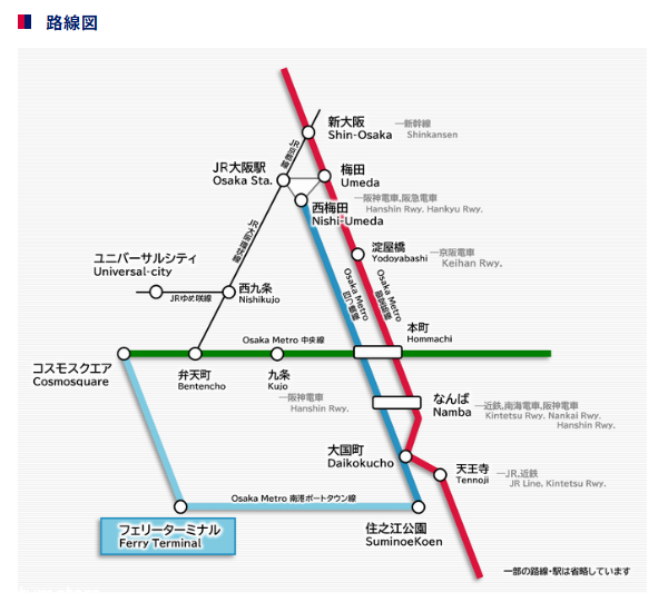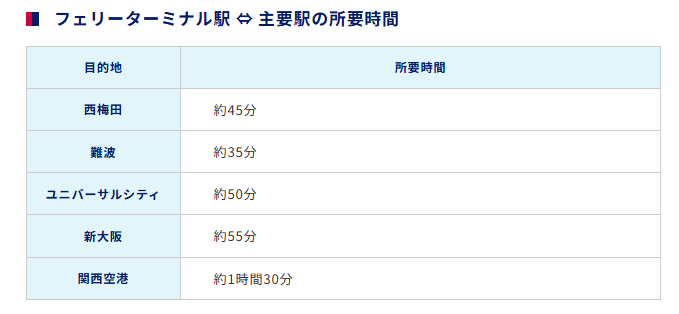 ドリームシャトルバスというUSJ周辺から南港フェリーターミナルへのバスも