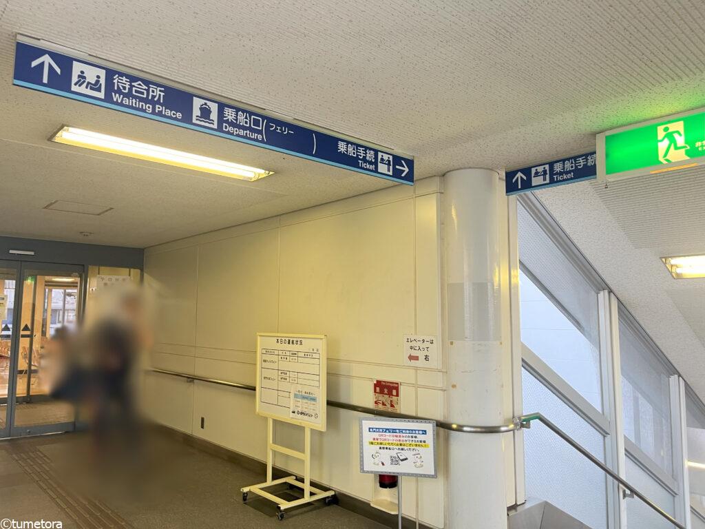 連絡通路を真っ直ぐ進むとフェリーターミナルの2階と直結しています。
